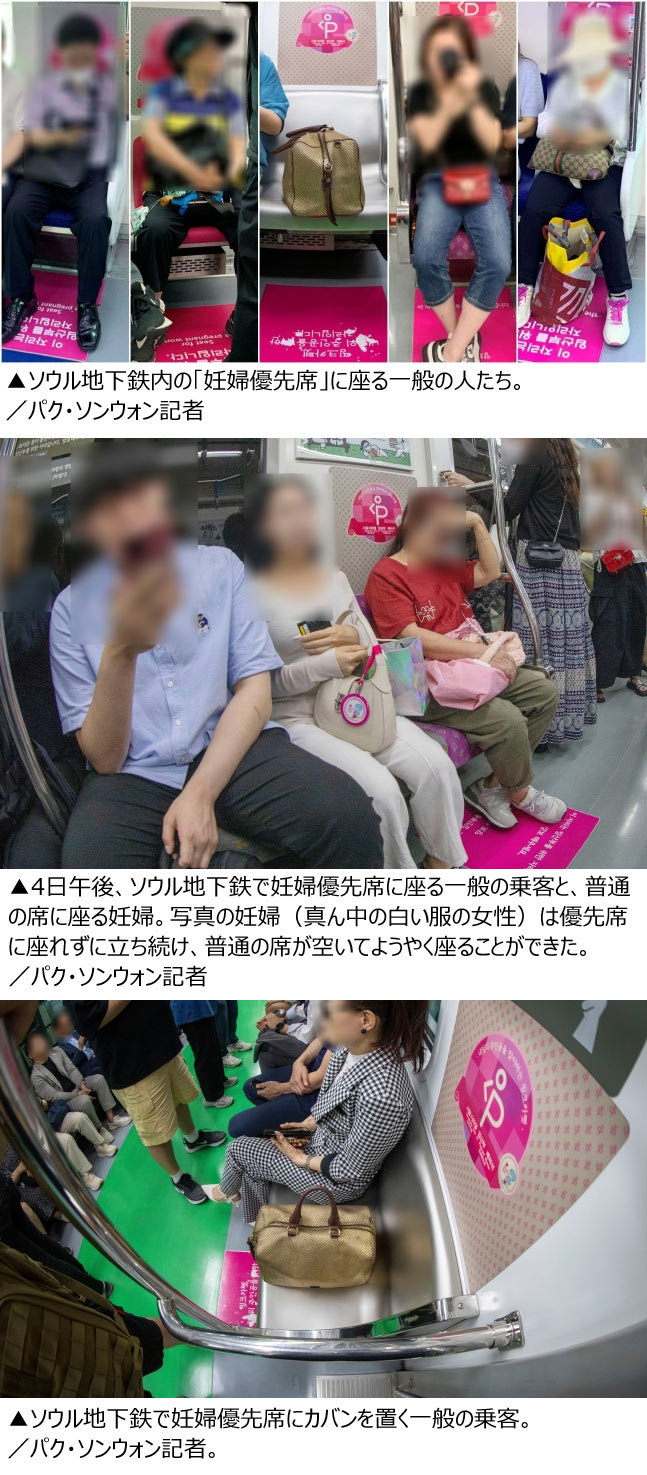 妊婦優先席は、妊娠と出産を奨励し妊婦に配慮する文化を広めるために、ソウル市が2013年に初めて導入したが、有名無実化しているのが実情だ。