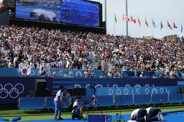 パリ五輪のアーチェリー競技会場を訪れた韓国のスポーツ関連団体の役員らが、マナーを守らずに観戦していたとして物議を醸している。