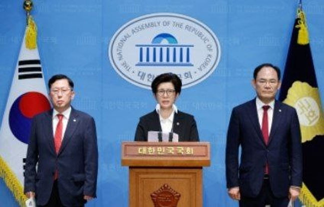 姜善栄(カン・ソンヨン)、林鍾得(イム・ジョンドゥク)、庾龍源(ユ・ヨンウォン)の各議員はこの日午前、国会疎通館で記者会見を開き、2日に行われた金龍顯(キム・ヨンヒョン)国防部(省に相当)長官候補者の人事聴聞会で飛び出したこのような発言について「同僚議員たちに品のない暴言と罵倒を乱発した民主党議員たちと一緒に国防委を運営していくことに大きな絶望を感じる」と指摘した。