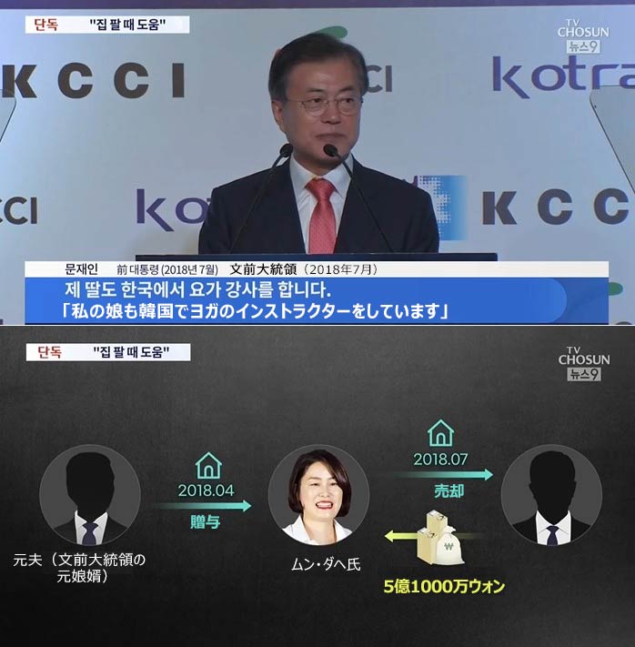 2018年4月、ダヘ氏は夫(文前大統領の娘婿)=当時=からソウル市鍾路区の自宅を贈与され、3カ月後に5億1000万ウォン(現在のレートで約5400万円、以下同じ)で第三者に売りました。