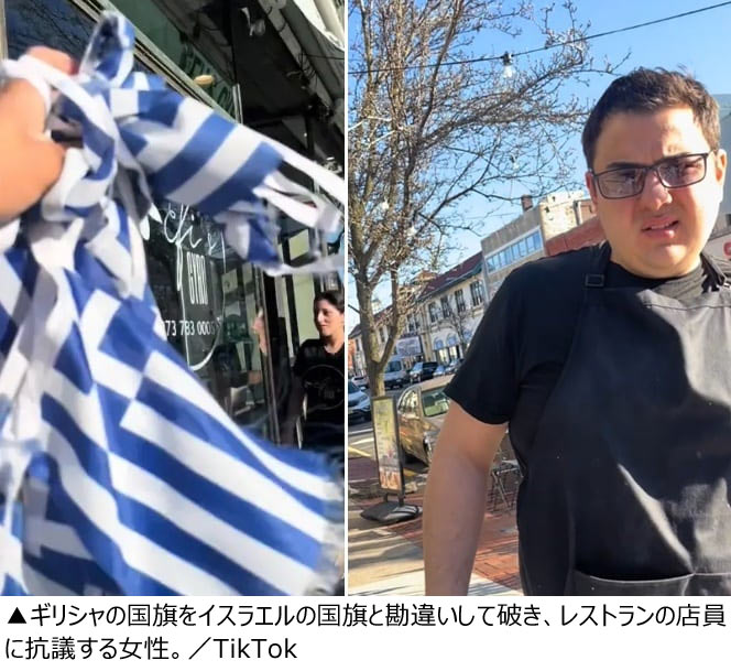 ショート動画アプリ「TikTok」の米国人ユーザーが、ギリシャのレストランに飾ってあった青と白のギリシャ国旗をイスラエルの国旗と勘違いして破くという事件があった。米紙ニューヨーク・ポストが16日(現地時間)、報じた。