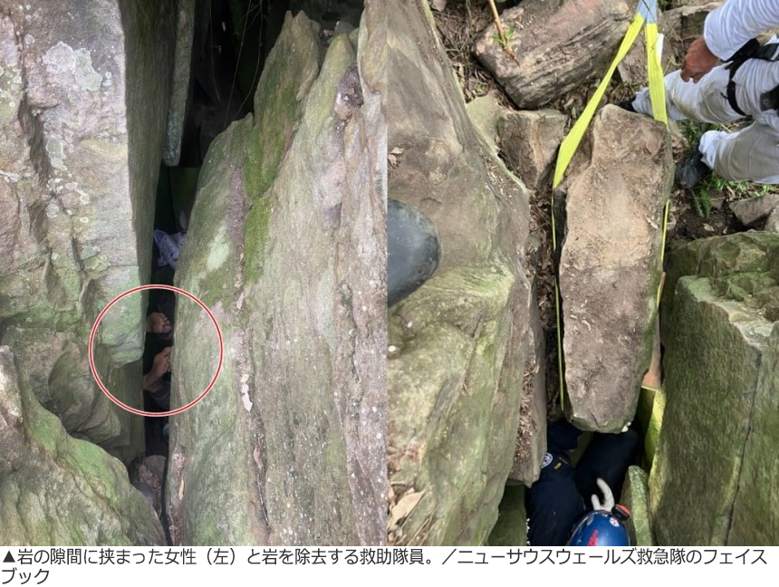 オーストラリアの山中で、落としたスマートフォンを拾おうとした女性が岩の隙間に転落し、逆さまの状態で7時間身動きできなくなるという事故があった。米CNNなどが22日(現地時間)、報じた。