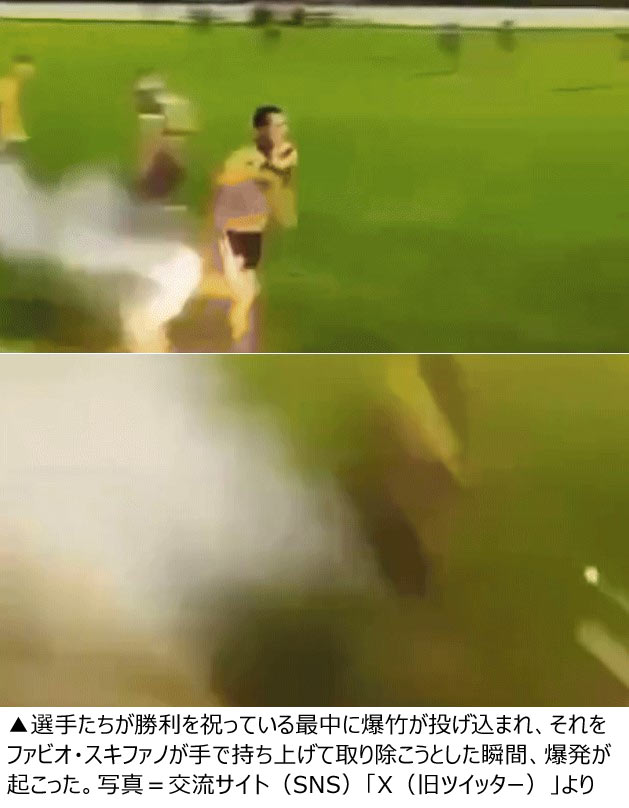 【写真】ファビオ・スキファノ選手が手にした爆竹が爆発する瞬間の映像