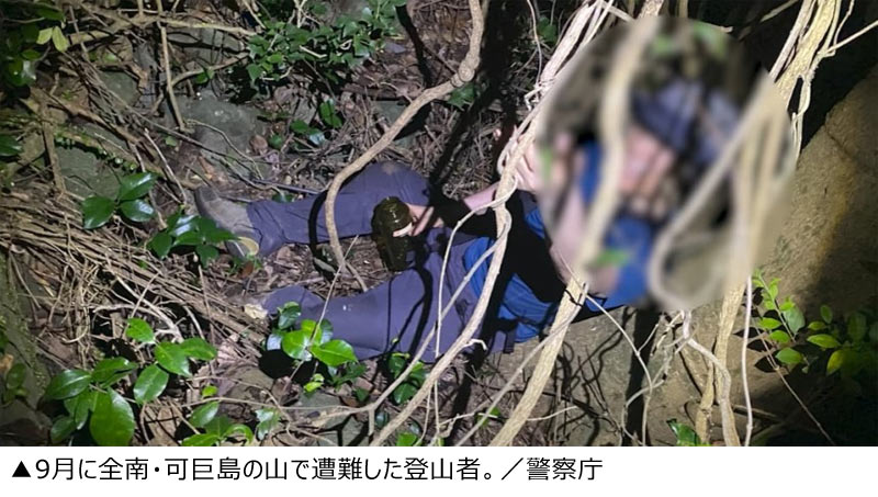 韓国警察庁が10月30日、明らかにした。それによると、今年9月に全羅南道新安郡の可居島から「登山中に道に迷った。けがをしている上、脱水状態で下山できない」と通報があった。