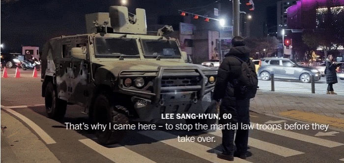 今回李在明代表がツイートした動画には、尹錫悦(ユン・ソンニョル)大統領が非常戒厳令を宣布した当日に、汝矣島の国会議事堂周辺に向かう装甲車の走行を阻止する様子が映っている。この動画はワシントン・ポストなど複数の外信が大きく取り上げていた。
