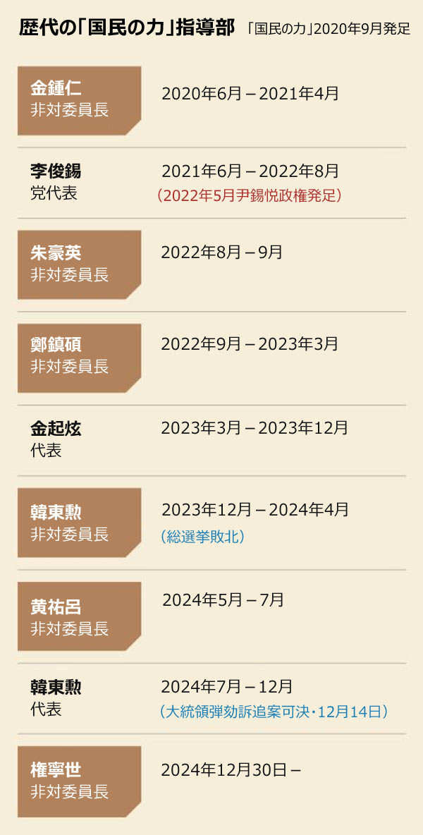 韓国の保守系与党「国民の力」に所属する権寧世(クォン・ヨンセ)議員=当選5回、ソウル竜山=が24日、新たな非常対策委員長に指名された。今月14日に尹錫悦(ユン・ソンニョル)大統領弾劾訴追案が韓国国会本会議で可決され、韓東勲(ハン・ドンフン)代表が辞任してから8日を経ての指名だ。権委員長は、非常戒厳や大統領弾劾など非常時局の中で党の危機を収拾するという課題を抱えることになった。