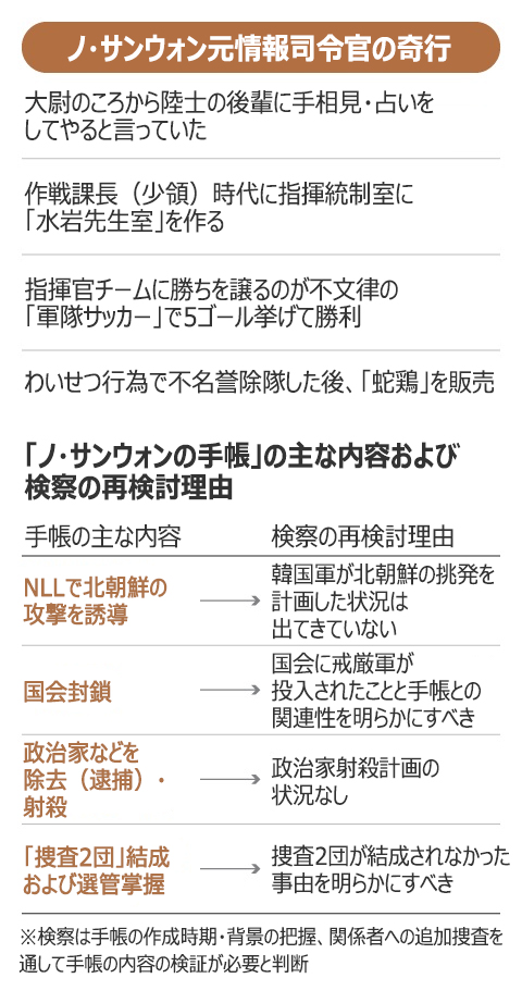 12月3日の非常戒厳を巡り、「ナンバー2」といわれるノ・サンウォン元情報司令官の、奇妙な行動についての話が後を絶たない。韓国法曹界からは「NLL(北方限界線)で北朝鮮の攻撃を誘導」などが記されて物議を醸したノ元司令官の手帳の内容に疑問があるという指摘が出ている。検察はこの手帳の信ぴょう性について原点から再検討する方針を立てたことが、25日に分かった。