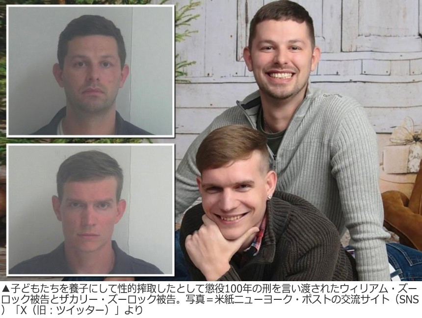米国で、男児2人を養子にして性的に虐待した同性カップルに懲役100年の刑が言い渡された。