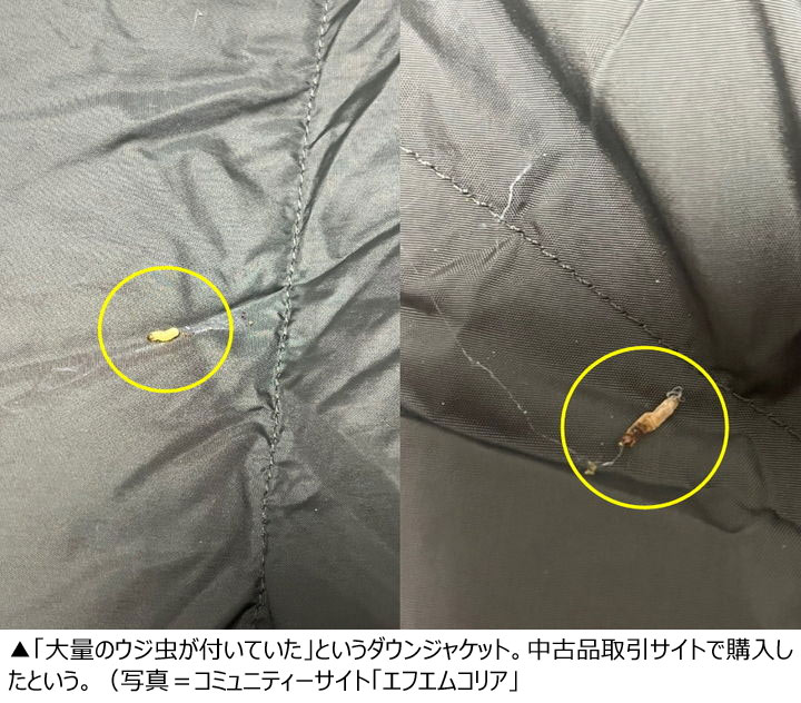 【NEWSIS】中古品取引サイトで購入したダウンジャケットから、大量のウジ虫が出てきたという報告がインターネットのコミュニティーサイトに書き込まれ、物議を醸している。