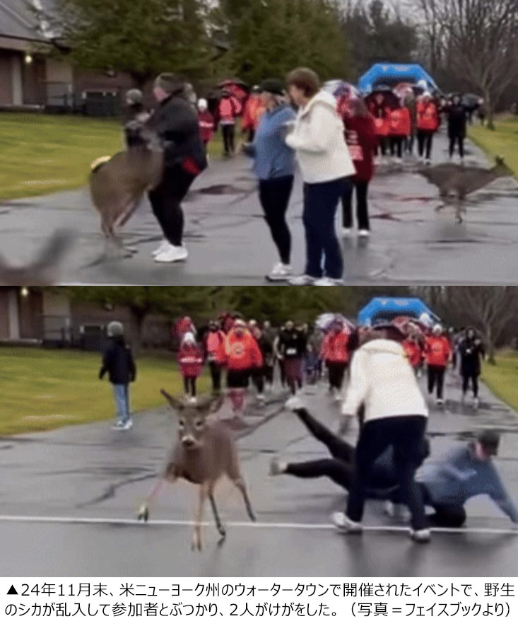 12月10日(現地時間)、SNSには米国で起きたシカとマラソンランナーの衝突動画が投稿された。