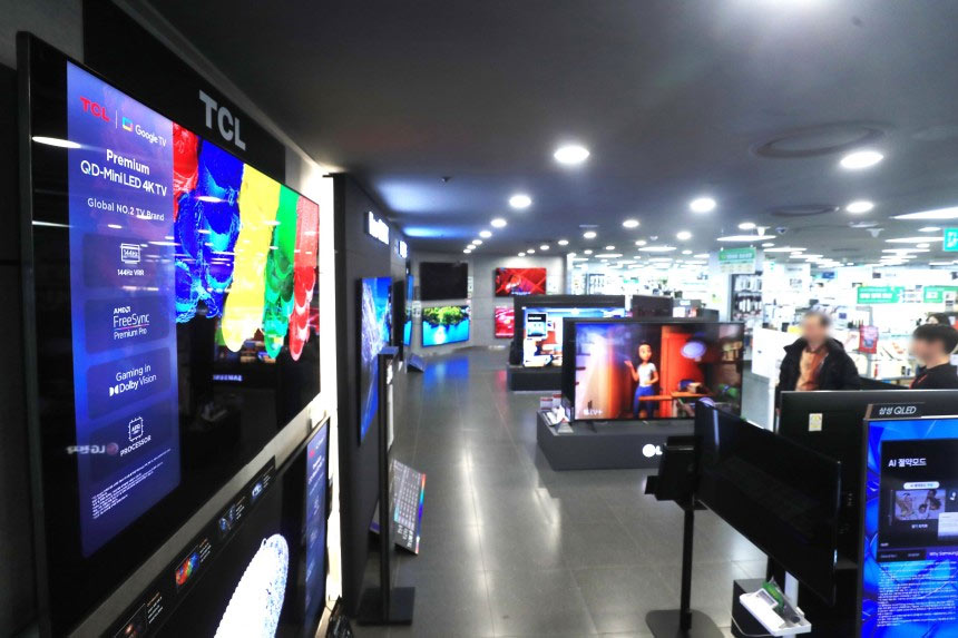 ▲ソウル市内の大型商業施設で販売されている中国TCL製のテレビ/昨年12月2日、チャン・リョンソン記者