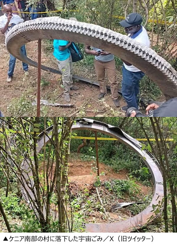 ケニア南部のある村に重さ500キロの宇宙ごみが落下した。ケニア宇宙局(KSA)が明らかにした。それによると先月30日にケニアのマクエニ郡ムクク村に直径約2.4メートル、重さ499キロの金属製リングのような物体が落下した。公開された写真を見ると、薄いタイヤのような形のこの物体は周囲に歯車のような溝があり、その間には連結したような痕跡も見える。