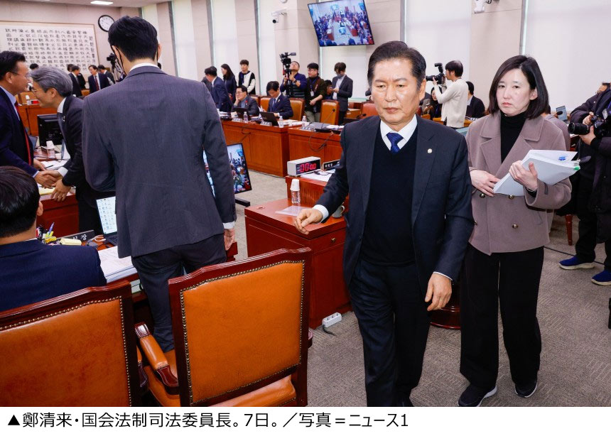 韓国の進歩(革新)系最大野党「共に民主党」に所属する鄭清来(チョン・チョンレ)法制司法委員長が7日、「尹錫悦(ユン・ソンニョル)は裁判所において内乱罪で死刑宣告を受けるだろう」と発言した。この日、国会法制司法委では、民主党が主導している国会弾劾訴追団が大統領弾劾訴追案から内乱罪を外すことを巡って与野党が攻防を繰り広げた。保守系与党・国民の力が「内乱罪を外すのはあり得ない」と主張するや、鄭委員長は自己発言を通してこのように述べ、会議を停会とした。