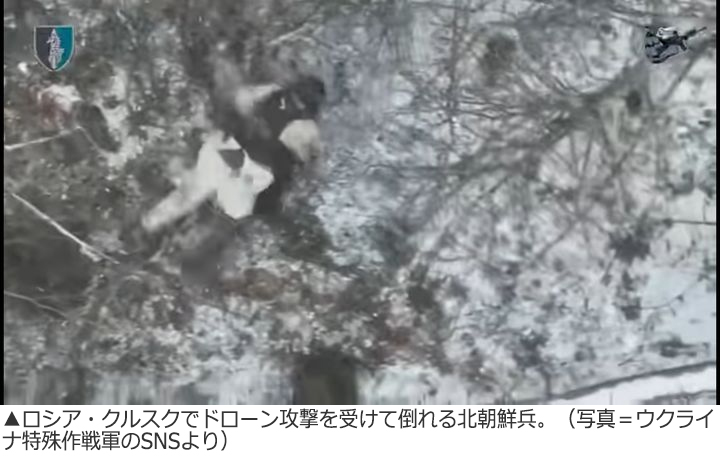 【写真】ロシア・クルスクでドローン攻撃を受けて倒れる北朝鮮兵
