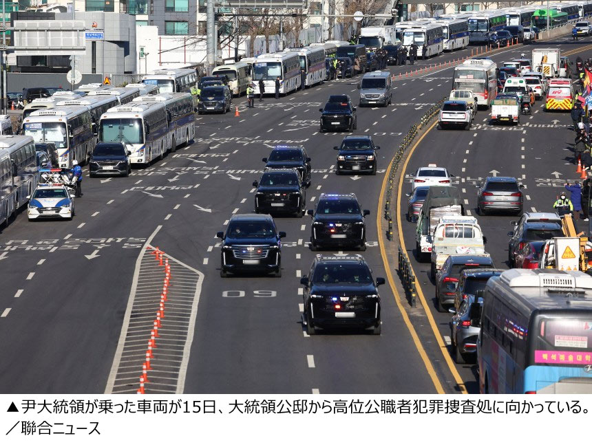 【写真】現職の身柄拘束は史上初 高位公職者犯罪捜査処に向かう尹大統領を乗せた車両