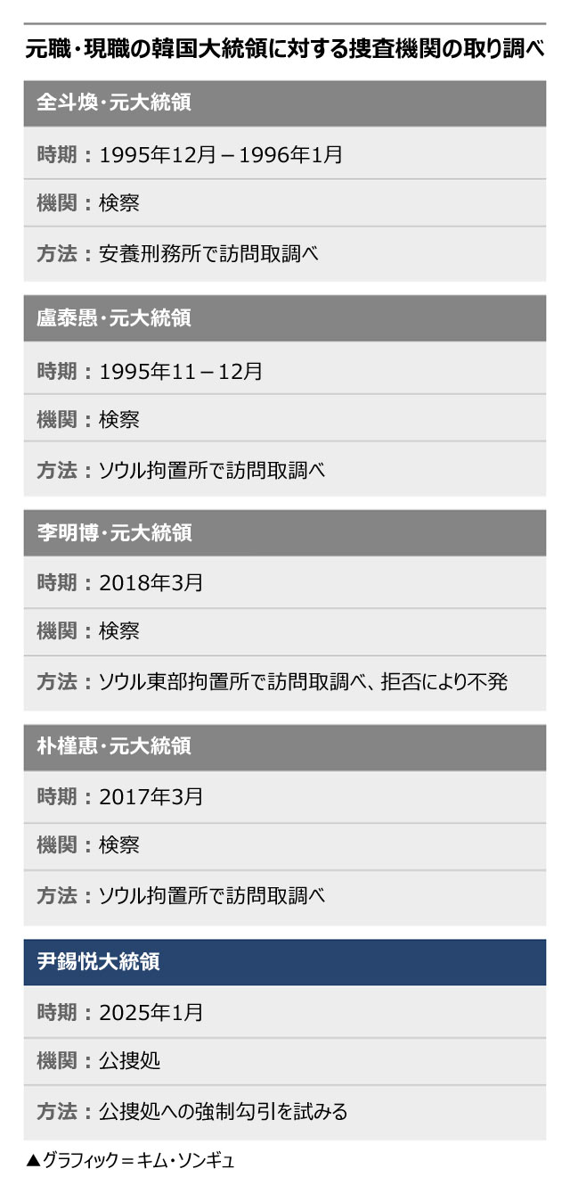 【グラフィック】元職・現職の大統領に対する韓国捜査機関の取り調べ