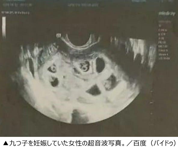 報道によると、九つ子を妊娠していたのは中国・江西省南昌市に住む25歳の女性。昨年10月に九つ子を妊娠していることを明かし、大きな話題を集めた。女性は結婚して1年間子どもができなかったため、病院で排卵誘発剤の注射を打ち、その後妊娠したかどうか検査したところ、9個の胎嚢(たいのう)が確認された。