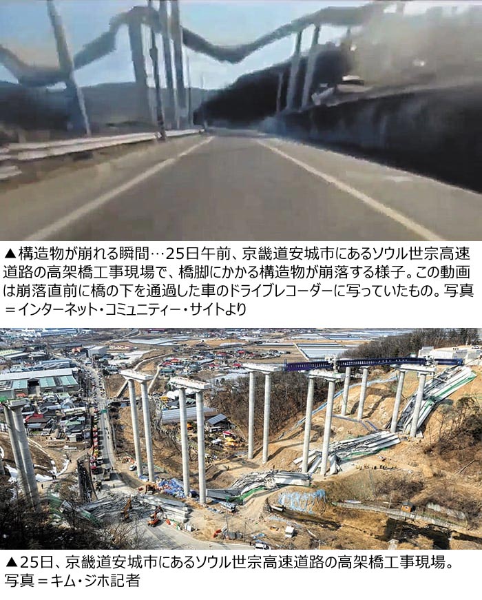 事故現場から約100メートル離れた忠清南道天安市内の住民たちはショックを受けている。住民のイム・ドンソプさん(69)は「車を運転して橋脚の下を通過したが、5秒もたたないうちに『ドーン』という大きな音がした。少しでも遅く通過していたら私も下敷きになっていただろう」と言った。チャン・ウムスンさん(84)は「テレビを見ていたら、爆弾が落ちるような音がして、家が崩れるかと思うほど揺れた。今でも足が震えている」と語った。