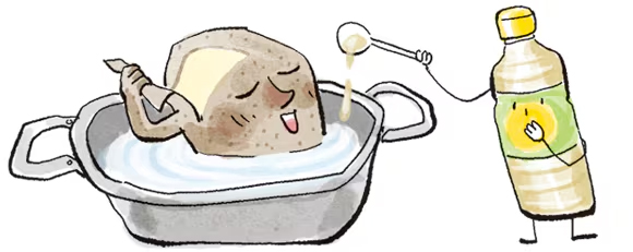 ジャガイモをゆでる時は、お酢を大さじ1杯入れると、ジャガイモがより柔らかくなり、皮もむきやすくなる。また、土のにおいも抑えることができる。