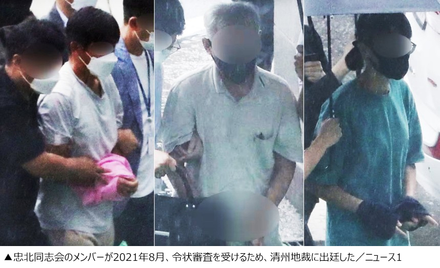 【写真】令状審査を受けるため清州地裁に出廷した忠北同志会のメンバー(21年8月)