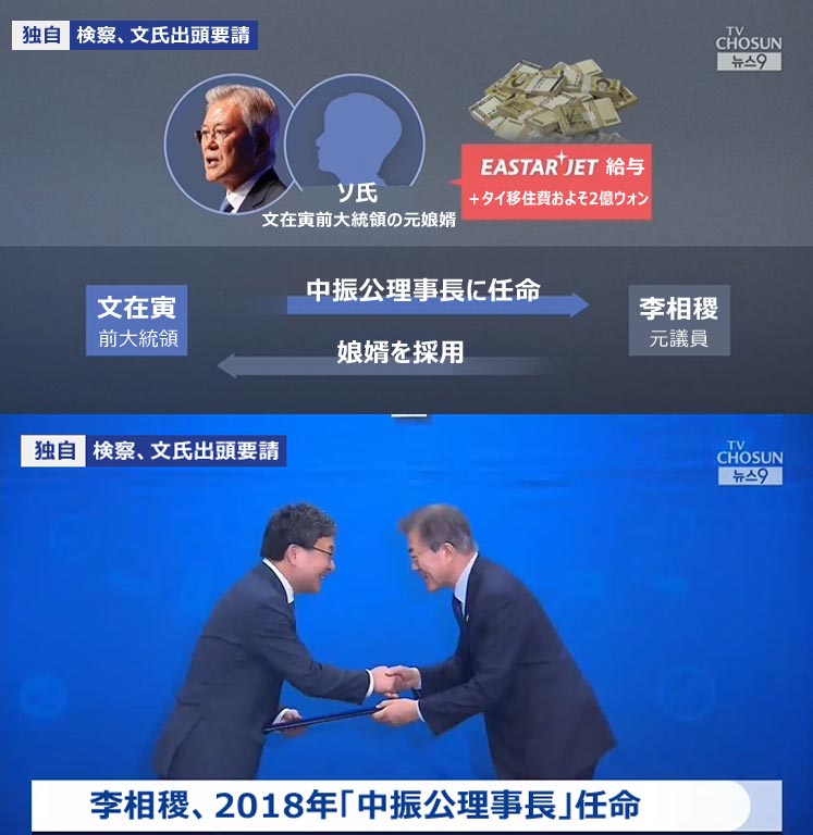 検察は、2018年にタイ・イースタージェットの実質的オーナーである李相稷(イ・サンジク)元民主党議員が、文氏の元娘婿のソ氏を、航空関連の経歴もないのに特別扱いで採用した疑惑を捜査しています。