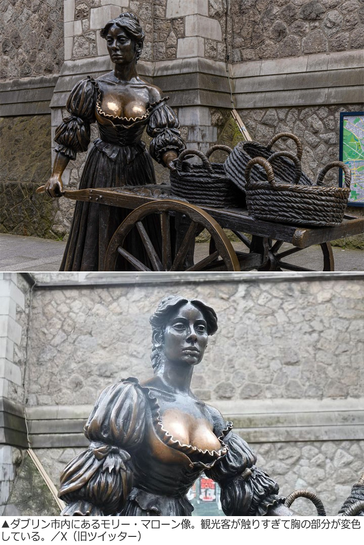 BBCなど外信が4日、報じた。それによると、ダブリン市議会は来月、「モリー・マローン像」の横に一時的に職員を配置し、観光客が胸部分を触..
