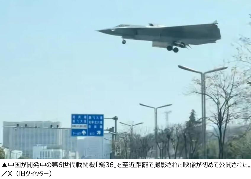 中国が開発中の第6世代戦闘機「殲36」(J36)を至近距離で撮影した映像が初めて公開された。