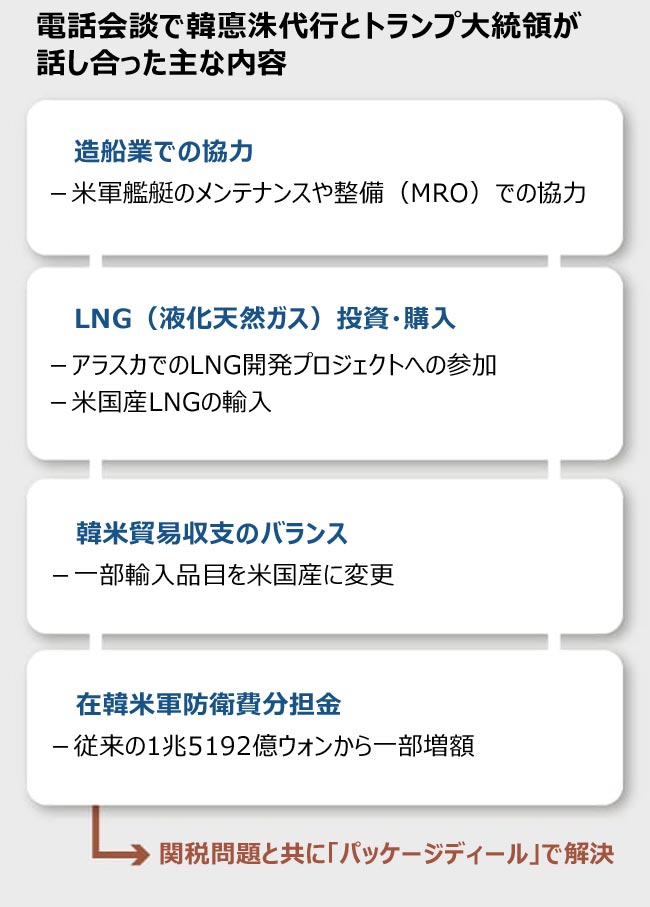 【表】韓悳洙・大統領権限代行とトランプ大統領が話し合った主な内容