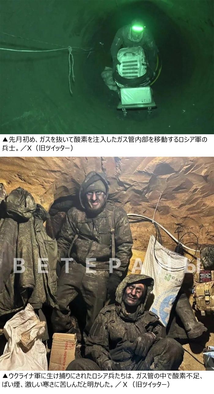 実際、ウクライナ軍のドローンがガス管の中から出てくるロシア兵を撮影した映像が公開されたことを考えると、ウクライナ軍はある程度この「ガス管奇襲作戦」を予想していたとみられる。