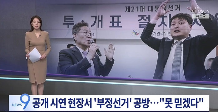 韓国大統領選挙が6月3日に行われるのを前に、中央選挙管理委員会では今日、公開模擬投開票を実施しました。不正選挙疑惑を払拭するため、選挙当日の進行手続きを詳細に説明する場でした。ところが、これを見に来た弁護士らが予定外の質問をしたため、舌戦が繰り広げられる事態となりました。チェ・ミンシク記者が現場からお伝えします。