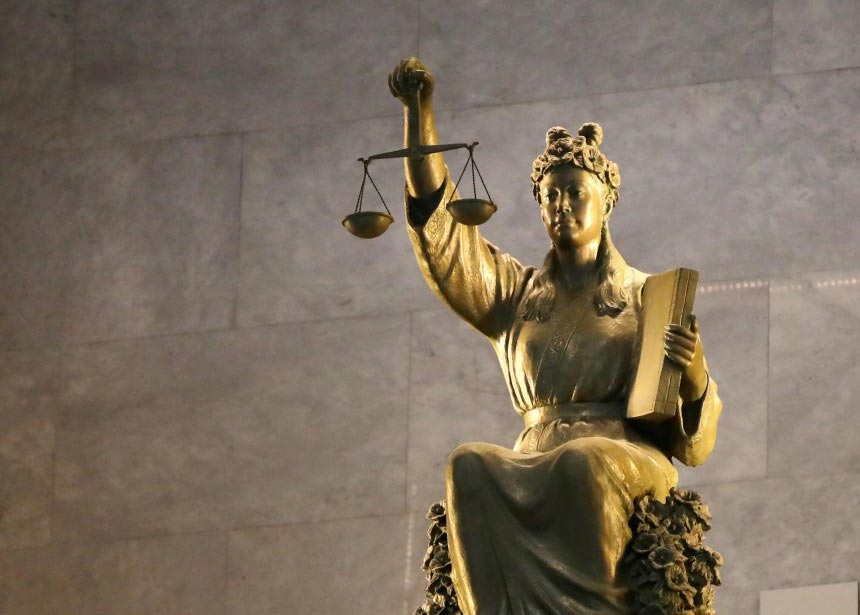 ▲ソウル市瑞草区瑞草洞の大法院(最高裁判所に相当)庁舎ロビーに設置された「正義の女神」/聯合ニュース