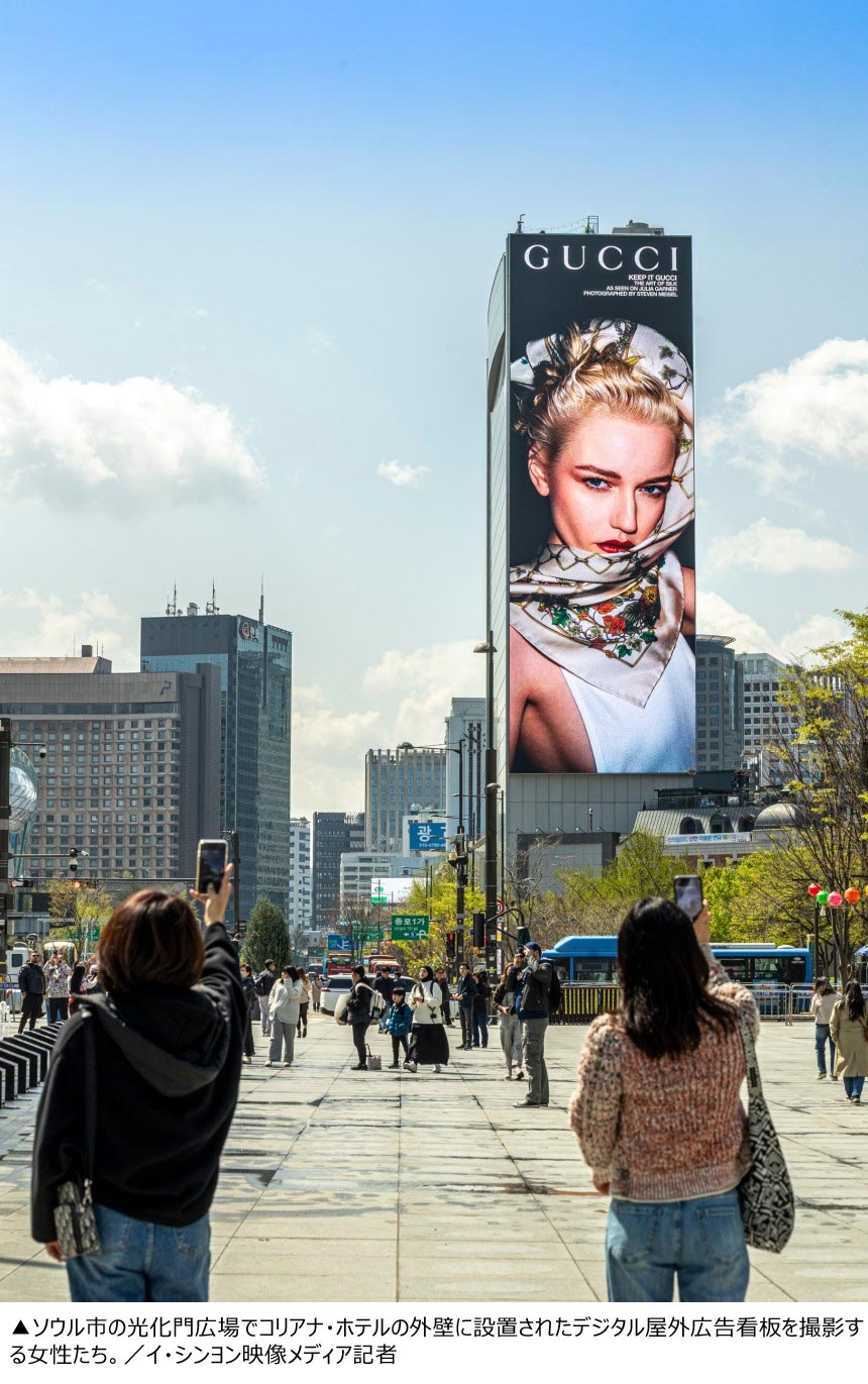 光化門には、コリアナ・ホテルのほかにも通信大手KT、教保生命、東亜日報、世宗文化会館、東和免税店などがデジタル屋外広告看板を設置したか、もしくは設置を検討しているという。数年後には、同地域がニューヨークのタイムズスクエアのように大型電光掲示板で彩られる観光名所になる可能性もあるというわけだ。広告業界の関係者は「こうした傾向は自由表示区域に指定された所だけでなく、他の地域にも屋外広告が増加する効果をもたらすだろう」との見方を示している。
