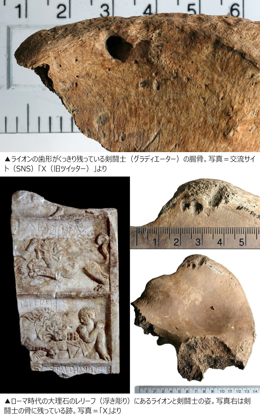 古代ローマの剣闘士(グラディエーター)と推定される骨から、ライオンのくっきりとした歯形が発見された。専門家らは、同時代に剣闘士と動物による闘いが存在したという最初の物理的な証拠になるとみている。