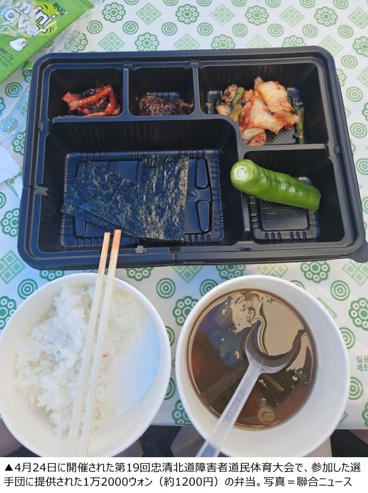 忠清北道忠州市で開催された第19回忠清北道障害者道民体育大会の開会式で、参加した選手団に対し、価格に見合わないと思われる弁当が提供されて批判が相次いでいる。忠州市障害者体育会側は「開催地として十分な準備できなかったことをおわび申し上げる」と謝罪した。同体育会などが4月25日に明らかにした。