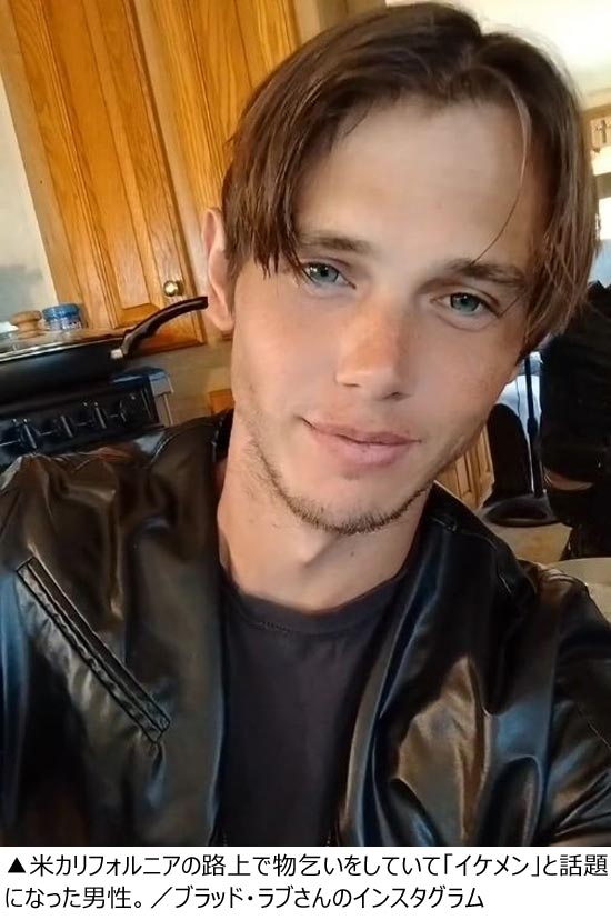 米カリフォルニアで物乞いによって生計を立てている男性が、「イケメンすぎる」と話題になっている。4月28日、英紙デイリーメールが報じた。それによると、最近インターネット上で、道端で物乞いをするブラッド・ラブという男性の動画が50万回以上再生され、注目を集めているという。
