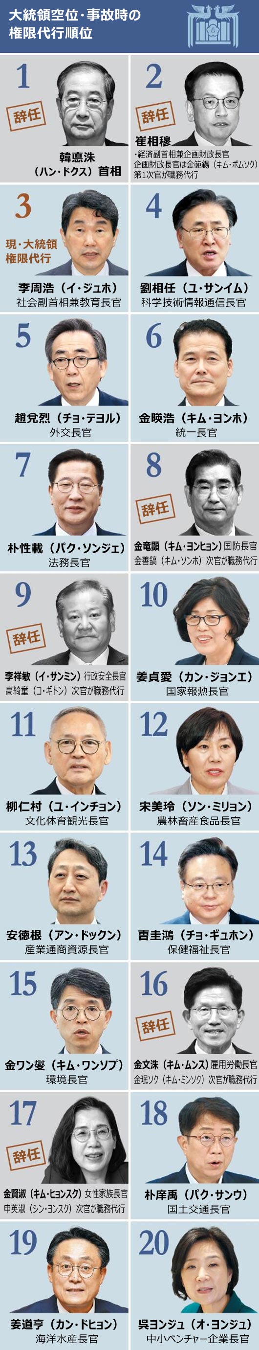【表】韓国大統領空位・事故時の権限代行順位