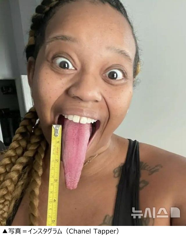 英紙「ザ・サン」は、2010年から「世界で最も長い女性の舌」という記録を保有し続けている米カリフォルニア州出身の女性シャネル・タッパーさん(34)について8日(現地時間)に報じた。