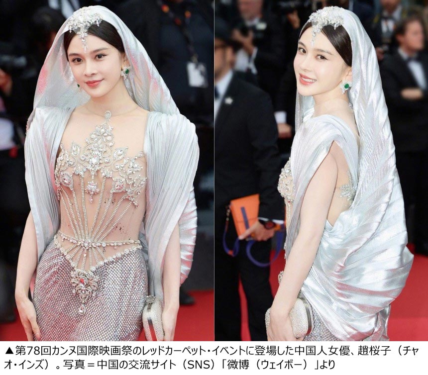 中国人女優の趙桜子(チャオ・インズ、34)がカンヌ国際映画祭の「露出禁止」方針を破り、レッドカーペットから追い出された。中国語圏メディアのETトゥデイなどが14日(現地時間)に報道した。