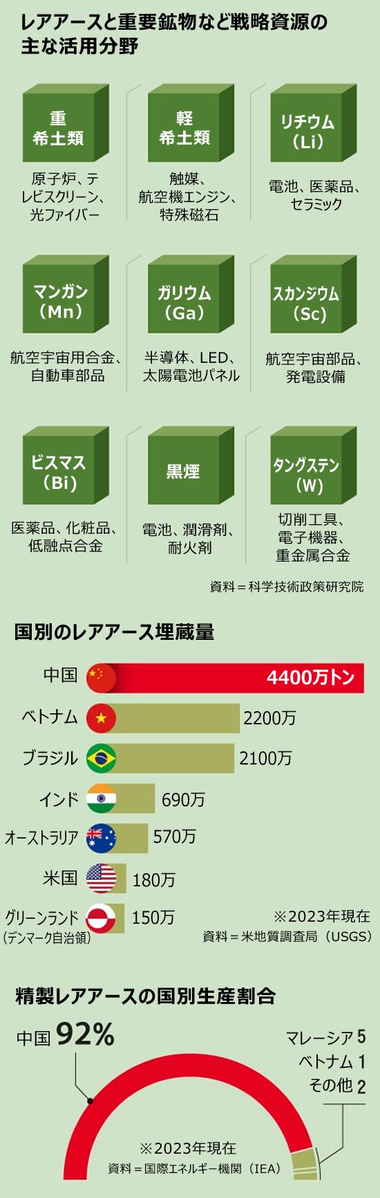 【グラフィック】レアアースと重要鉱物など戦略資源の主な活用分野