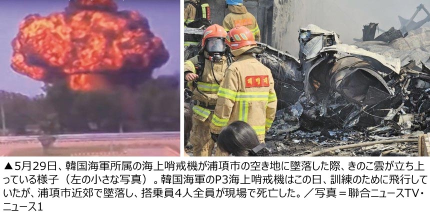 韓国海軍所属のP3海上哨戒機が浦項の郊外に墜落し、搭乗員全員が死亡する事故が29日に発生した。