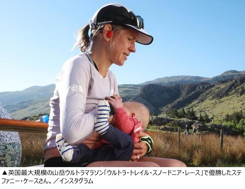ケースさんが話題になったのは、単にこのレースで優勝したからではない。出産後わずか6カ月でレースを走ったことに加え、他のライバルたちより30分遅れてスタートし、途中に設けられている複数のエイドステーション(補給・休憩所)で生後6カ月の娘に授乳しながらも優勝するという快挙を成し遂げたからだ。