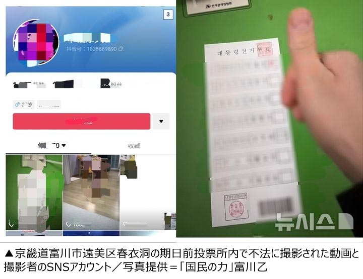 【NEWSIS】京畿道富川市遠美区春衣洞の期日前投票所で投票する様子を不法に撮影し、自らのSNS(交流サイト)に動画を掲載した30代の男が警察に立件された。