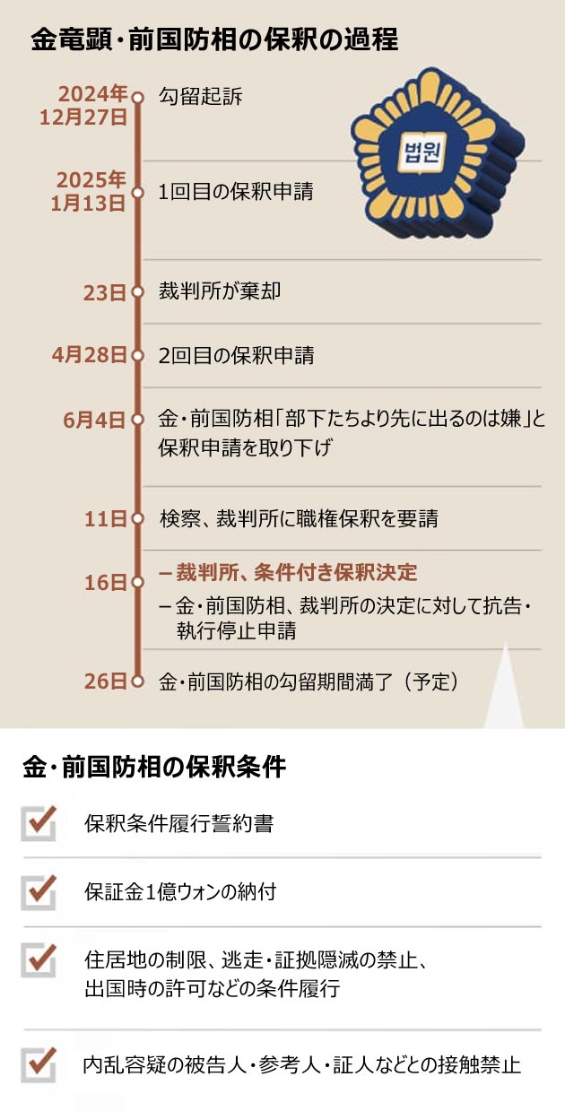 【表】昨年12月27日の金竜顕・前国防相勾留起訴から勾留期限満了(6月26日)までの流れ..