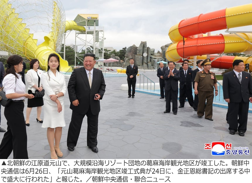 北朝鮮の金正恩(キム・ジョンウン)総書記が李雪柱(リ・ソルジュ)夫人と娘のキム・ジュエさんを帯同し、江原道地域の大規模リゾート団地「元山葛麻海岸観光地区」の竣工式典に出席した。
