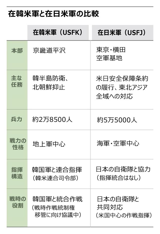 在日米軍の役割が実際に拡大した場合、在韓米軍もいかなる形であれ変化は避けられないと予想できる。米国は人員やリソース面での制約を考慮し、現在その任務が北朝鮮抑止に限定されている在韓米軍についてはいわゆる「戦略的柔軟性」を模索している。新たな任務に伴い在韓米軍の一部再配備もあり得るという話だ。実際に米国のヘグセス国防長官は今月初めに米軍削減の可能性について「米国は常にあらゆる場所にいることはできないし、その必要もない」と発言した。また在韓米軍のブランソン司令官は韓国について「日本と中国の間にある空母のようなもの」との見方を示した。在韓米軍は北朝鮮の脅威だけに備えるのではなく、中国を抑止するインド太平洋戦略の基幹戦力になるという意味だ。ブランソン司令官は今年5月「力による平和を維持するためわれわれは時に別の地域に移動しなければならない」とも述べ、有事に在韓米軍を周辺の紛争地域に投入する可能性も明確にした。