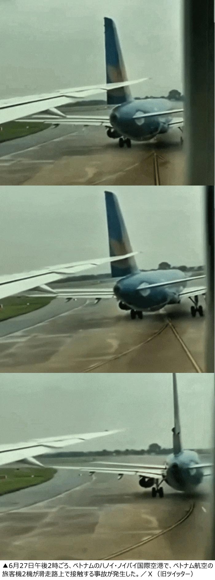 米紙ニューヨーク・ポストなどが6月28日に報じたところによると、事故は6月27日午後2時ごろ、ハノイ・ノイバイ国際空港で発生。滑走路上でベトナム航空の旅客機が自社の別の旅客機と接触した。