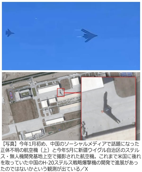 【写真】今年1月に中国SNSで話題になった正体不明の航空機と今年5月に新疆ウイグル自治区で撮影された航空機