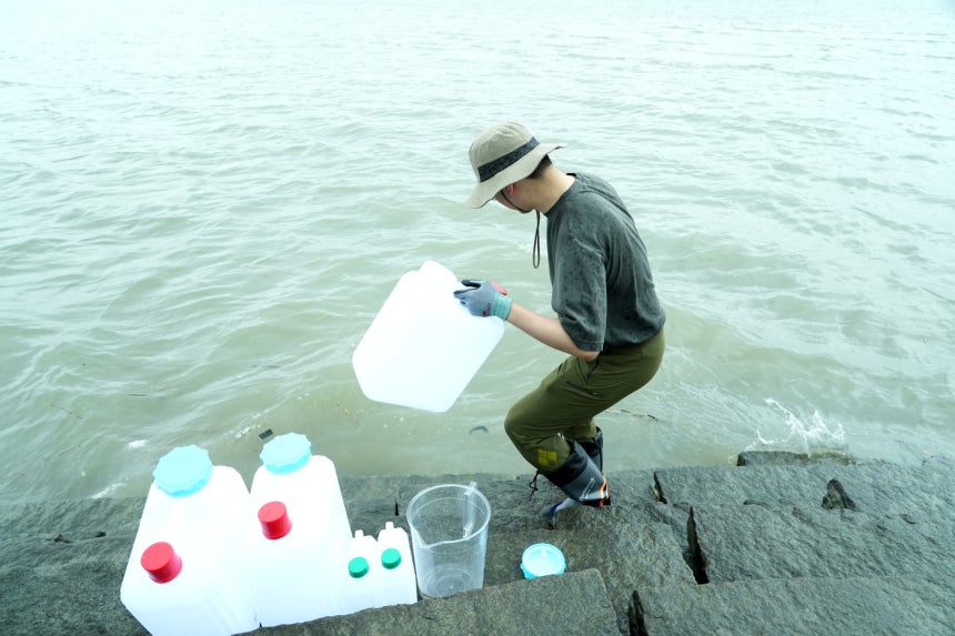 調査担当者らはそれぞれの場所で20リットル容器3個、2リットル容器2個分のサンプルを採取した。今後はKINSの分析室でセシウ..