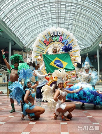 【NEWSIS】ソウル市松坡区のロッテワールド・アドベンチャーで9日、太陽の女神とサンバのダンサーたちが、サンバ・カーニバル・パレードを披露している様子。