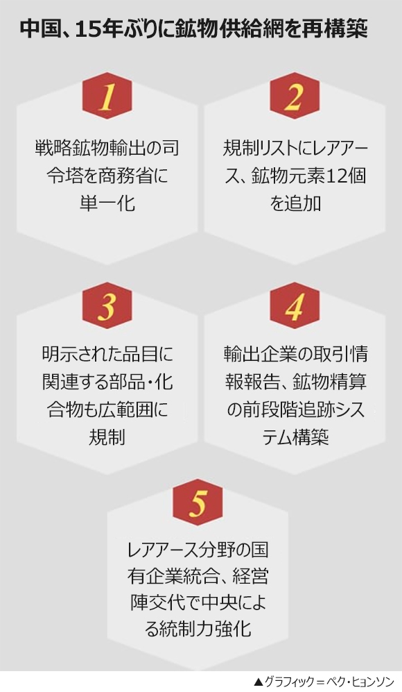 戦略鉱物規制を強化する中国の最終目標は、戦略鉱物の不法な採掘・密輸を完全に防ぐ国家管理体系の構築であることが分かった。2010年に日本との尖閣問題でレアアース輸出制限を敷いた際、密輸によって失敗した経験を繰り返さないようにするため、漏れのない管理体系を構築することだ。